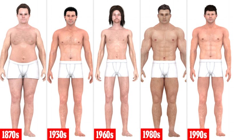 During the 1870s the ideal body type for men was to have a beer belly. This body type suggested that you came from a place of class and money. During the Elizabethan times, what was considered the perfect type revolved around powerful legs, shapely thighs, and strong calves. The Idea of chiseled abs and perfect pecs was more to akin to peasants.