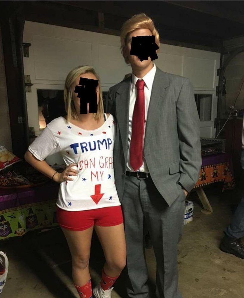2. Grab them. Okay, in my last post I pointed out that dressing as Donald Trump for Halloween was wrong. Let’s see how these two took it a step further and enacted the statement “Grab them by the pussy” and made it a costume. Yeah lets showcase sexual assault as a costume for Halloween. Not just no but hell no.