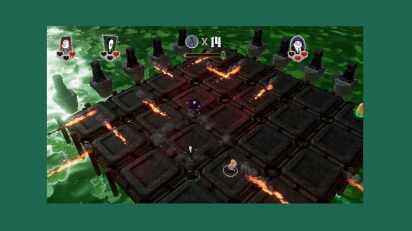 There are four “worlds” with eight levels to navigate through. What is fun about this game is that there is no “one” super powered character you can use to always win. The game simply doesn’t work that way. Every enemy can be killed with a couple hits from any of the four characters. You can unlock a total of four “weapons” to get through each level. Each weapon is unique in its ability. The game doesn’t focus on character achievements, so it gives you more incentive to work as a team to complete the level. It is merely a fun time feel good game where you dont have to worry about dying and starting all over. If you die, you simply jump back in and keep moving forward.