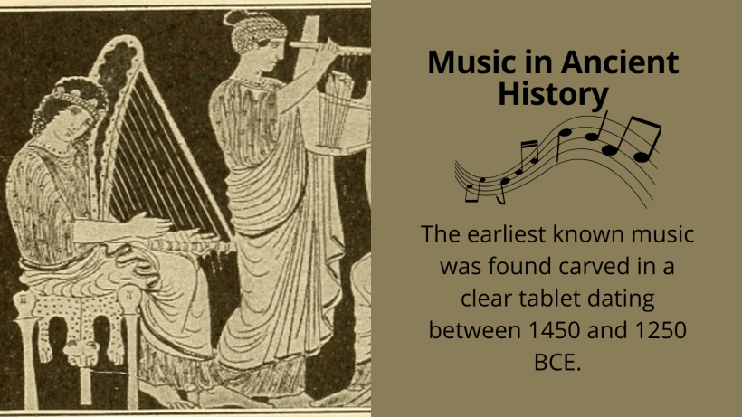 The earliest known music was found carved in a clear tablet dating between 1450 and 1250 BCE. It’s as discovered in modern day Syria in the ancient ruins of the city Ugarit. The tune is a hymn to Nikki’s – the wife of a moon-god. This tablet goes into great detail about the intervals between the notes, the pitch to be used for the melody, and the stipulation for its performance. The tablet goes further to say that i is sung by a single voice that is to be accompanied by a lyre. That is perhaps more in-depth than most music created today.