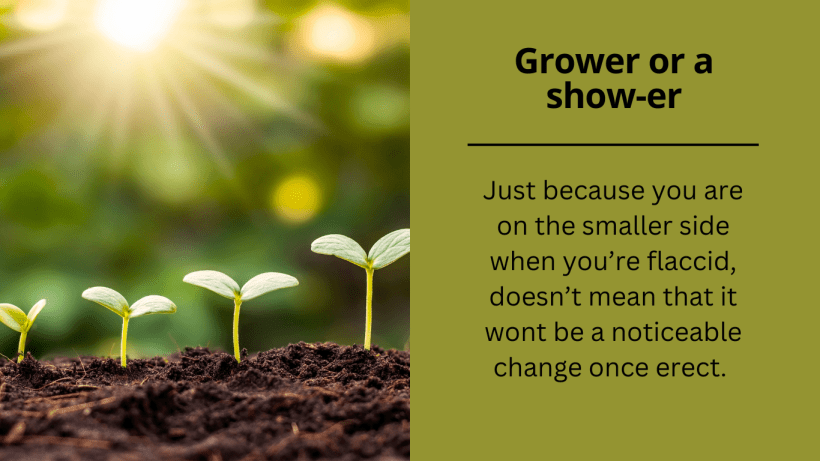 Back to the topic, there is no consistent data that shows a relationship between the size of a flaccid penis and its erect length. But it still causes apprehension in locker rooms. Discretely looking around you are probably filled with thoughts that a guy with a big limp penis cant possibly get much bigger. Just because you are on the smaller side when you’re flaccid, doesn’t mean that it wont be a noticeable change once erect.