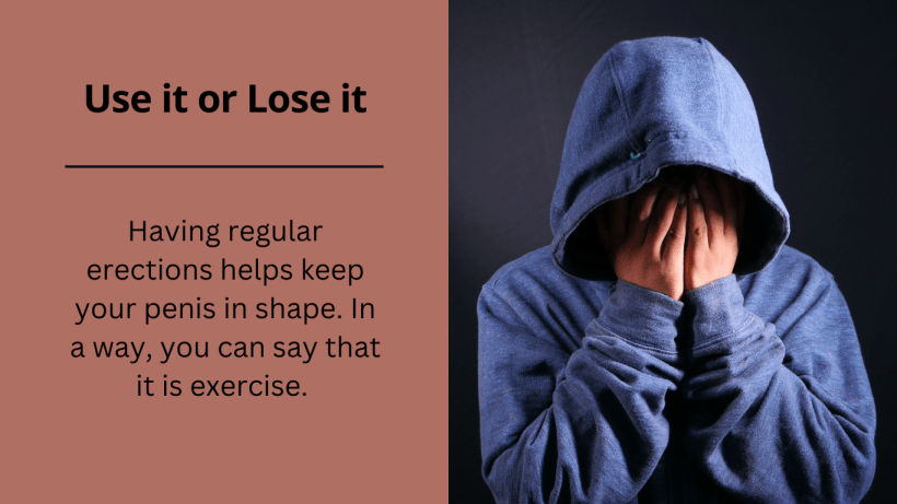 You are probably thinking, “wait, the penis is not a muscle.” That may be but it is nonetheless true. Having regular erections helps keep your penis in shape. In a way, you can say that it is exercise.