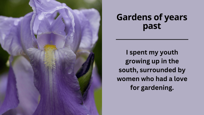 I don’t really know how I fell into gardening. Maybe it was because I thought it was a normal thing to do since all of the women in my family line seemed to do it. Even being a male, I didn’t question it. I honestly loved helping plant our vegetable gardens and planting flowers with my mother. What I disliked was weeding and harvesting. Harvest always meant we had bushels of beans to hull, corn to husk, and peas to shell. It seemed never ending and took away from my time of make believe.