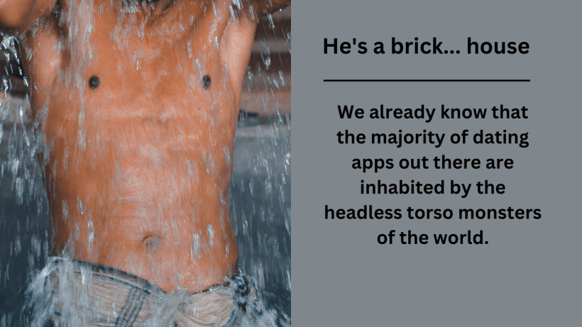 We already know that the majority of dating apps out there are inhabited by the headless torso monsters of the world. You know them, you’ve seen them. Square after square of just the chest of some guy, no head or arms, and often sporting a six pack. You on the other hand take time to curate the pics you post. Hair is on fleek (do the kids still say that?) clothes are perfect, and your hair is coiffed in a way that would make angels cry. You even post a few pics of you in gym wear because all of your hard work is paying off.