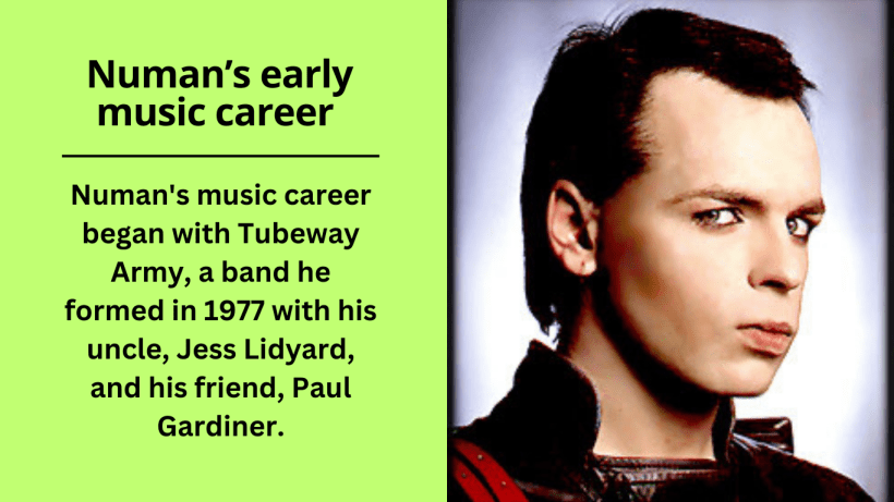 Numan’s music career began with Tubeway Army, a band he formed in 1977 with his uncle, Jess Lidyard, and his friend, Paul Gardiner. The band released their first album, “Tubeway Army,” in 1978. The album was a mix of punk rock and electronic music, featuring synthesizers and drum machines alongside guitars and bass. The album was not a commercial success, but it caught the attention of Beggars Banquet Records, who signed the band.