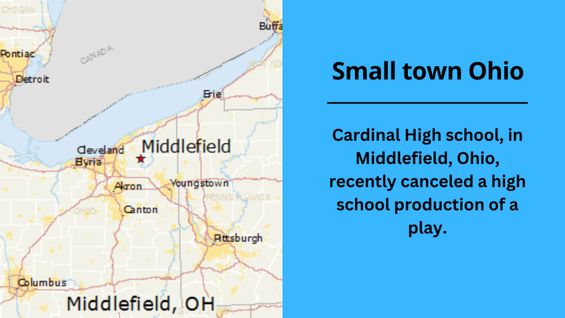 Cardinal High school, in Middlefield, Ohio, recently canceled a high school production of a play. The board members deemed it controversial, based solely on the objections of a few conservative citizens. When asked what was the content that triggered the cancellation of the production, the school board replied that it was due to vulgarity. This play is also known for having a character that has two gay fathers. Once this decision was laid down by the school board, public outcry began.