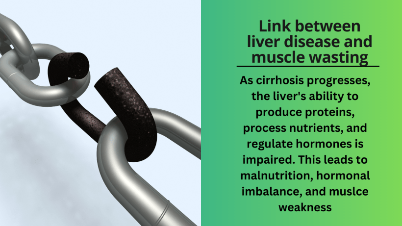 As cirrhosis progresses, the liver’s ability to produce proteins, process nutrients, and regulate hormones is impaired. This can lead to malnutrition, hormonal imbalances, and muscle weakness. Additionally, the buildup of toxins in the bloodstream due to liver damage can further exacerbate muscle wasting.