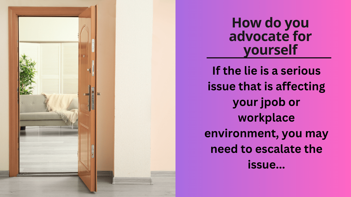 It can be difficult to address workplace lies and advocate for yourself, especially if you are in a position of less power or authority. However, it is important to stand up for yourself and your rights in the workplace.