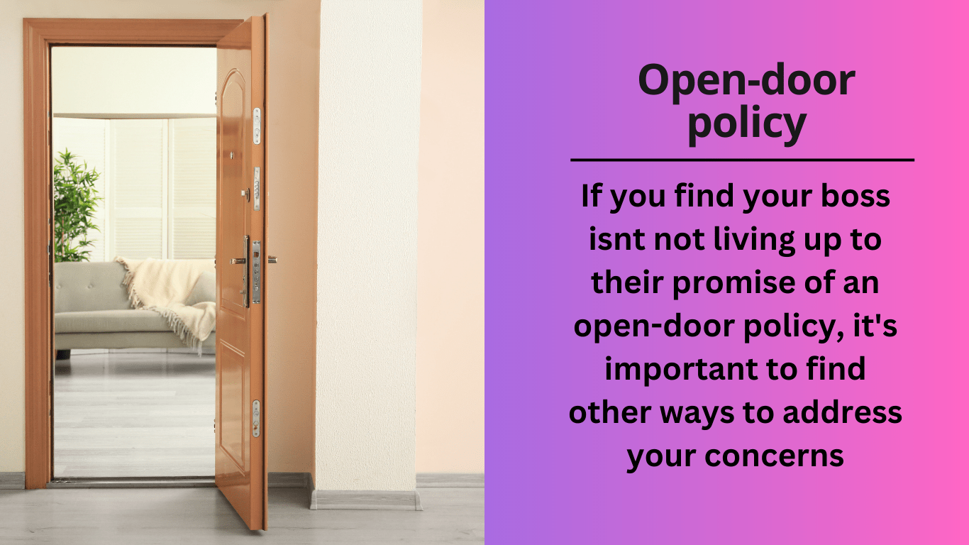 If you find that your boss is not living up to their promise of an open-door policy, it’s important to find other ways to address your concerns. This may involve talking to other managers or HR representatives, or seeking out opportunities to voice your concerns in team meetings or through anonymous feedback channels.