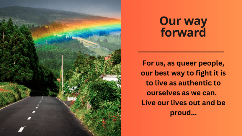 Combating homophobia is an event that needs to be addressed by all parties involved. For us, as queer people, our best way to fight it is to live as authentic to ourselves as we can. Live our lives out and be proud, don’t shy away from who you are and the things you like. By more of us being present in the public view, it forces others to see that we are people and that it is not just a stage in your life. We are as valid as they are.