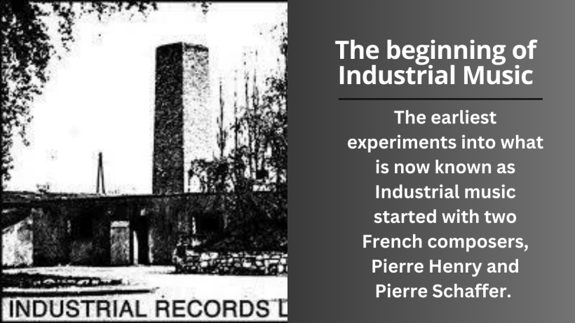 The earliest experiments into what is now known as Industrial music started with two French composers, Pierre Henry and Pierre Schaffer. These two are the forefront of an experimental music genre called musique concrete and began in the 1920s.