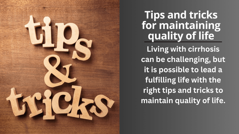 Living with cirrhosis can be challenging, but it is possible to lead a fulfilling life with the right tips and tricks to maintain quality of life. Here are some strategies that can help:
