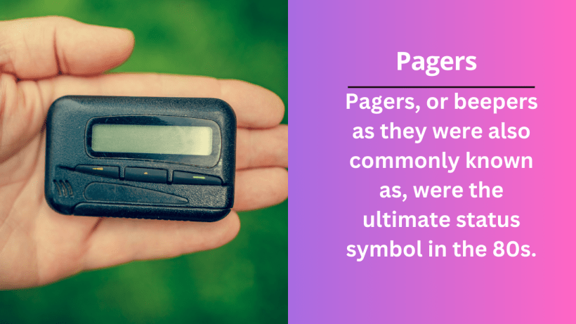 Pagers, or beepers as they were also commonly known as, were the ultimate status symbol in the 80s. If you had a pager, you were considered to be on the cutting edge of technology. Pagers were the original text messaging devices and allowed users to send short, numeric messages to each other.