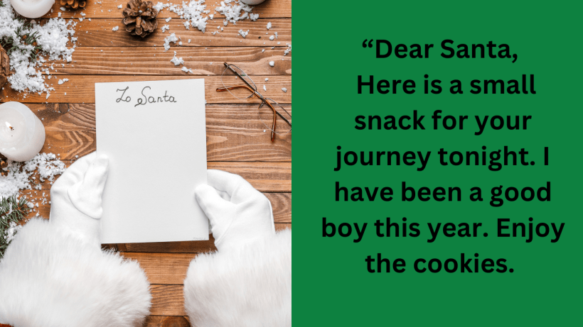 Here is a small snack for your journey tonight. I have been a good boy this year. Enjoy the cookies.