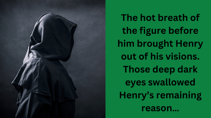 The figure stretched out its arm towards Henry. At the end of its arm was something that could only be described as a claw. I looked a little like a hand in that it had five digits. But each one was curled in an unreal fashion and came to a point with a sharp nail. Seeing the hand move closer to his face, Henry wanted to turn and run or just disappear from this very spot, but neither happened. He stood there terrified and not able to utter a sound. The hand moved ever closer to Henry’s shoulder and suddenly the claws wrapped around his shoulder. The touch seemed to send a shock through Henry’s body and suddenly his mind was filled with images.