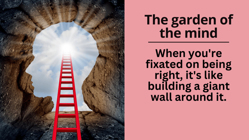 Imagine your brain as a magnificent garden. When you’re fixated on being right, it’s like building a giant wall around it. New ideas? Denied entry! Different viewpoints? Blocked at the gate! What a shame to miss out on all the vibrant diversity waiting to bloom! Here’s how to dismantle the wall and transform your garden into a thriving ecosystem: