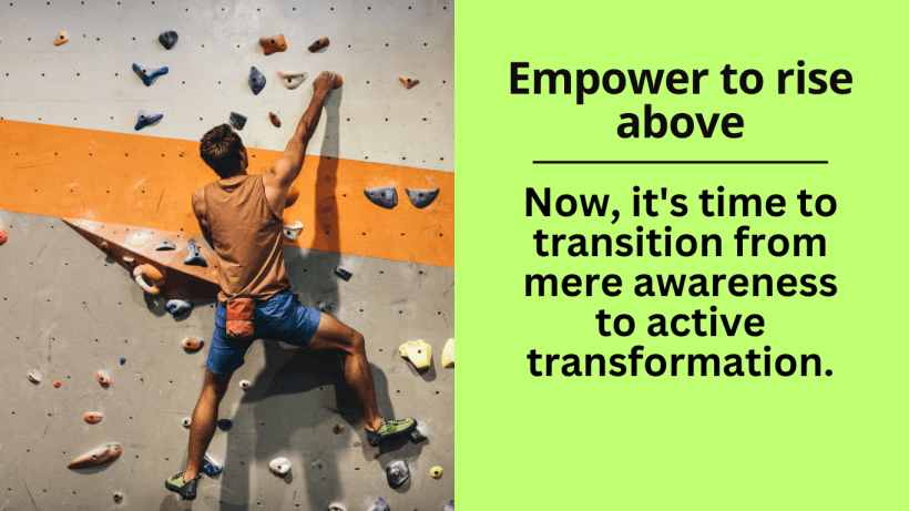 Throughout this exploration of blame and shame, we’ve delved into their detrimental effects, explored methods for identifying them, and equipped you with practical tools for effective management. Now, it’s time to transition from mere awareness to active transformation. By actively nurturing self-compassion, embracing positive self-talk, and prioritizing self-care, you can empower yourself to rise above the limitations imposed by blame and shame. This final phase paves the way for a more fulfilling and resilient you, ready to embrace challenges as valuable learning experiences and propel yourself towards achieving your full potential.