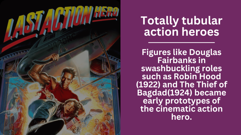 The rise of the action hero in film can be traced back to the early 20th century with the advent of silent films and serial adventures. Figures like Douglas Fairbanks in swashbuckling roles such as Robin Hood (1922) and The Thief of Bagdad(1924) became early prototypes of the cinematic action hero. These characters embodied athleticism, daring stunts, and a larger-than-life sense of adventure, setting the stage for future film heroes. Fairbanks’ roles introduced the concept of the “everyman” rising to heroic status, a theme that would recur throughout action cinema.