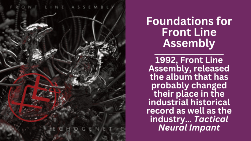 1992, Front Line Assembly, released the album that has probably changed their place in the industrial historical record as well as the industry, in and of itself. That album was Tactical Neural Implant. This album was noticed as being a massive departure from their earlier styles, including multi-layered sounds that would become the signature of Front Line Assembly.