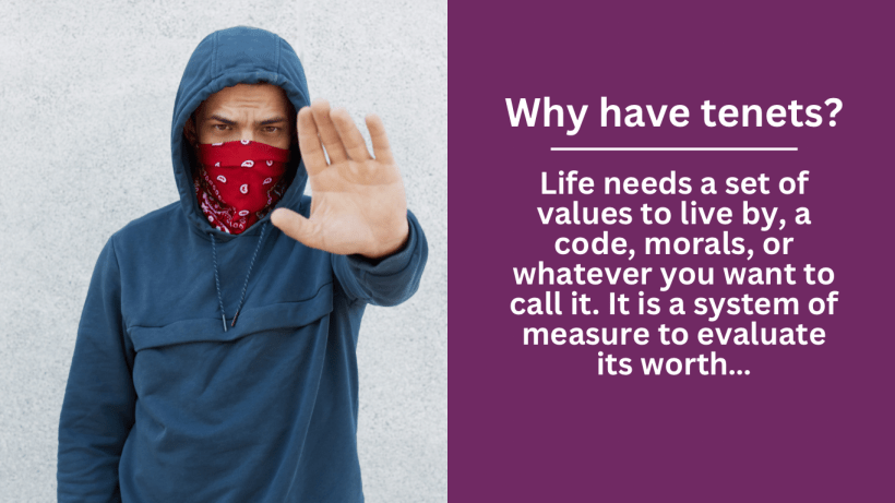 What is important is that when you are looking for shoes, you have a need that has to be filled. You wouldnt buy flip flops if you needed a good pair of trail running shoes. Then, once you decide the style, you further evaluate them based on how they feel, look, and build. These are guiding principles in buying those shoes — tenets, if you will. Structure is important to all things, it allows us to have a path to navigate on and do so in the right way. Even bad people have guiding principles they operate under, even those agents of chaos who profess to never following rules are following at least one. The one to not follow rules. It is almost inescapable, so why not set up those tenets to align with your beliefs?