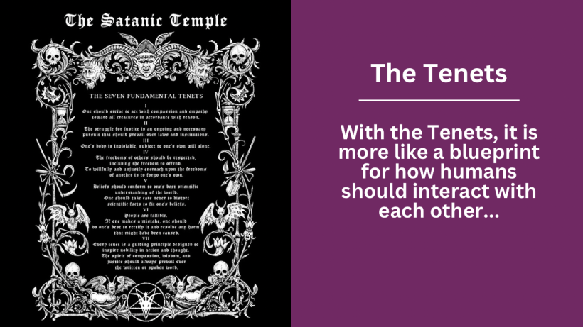 Every belief system needs a core foundation of how to act and behave, these are guiding principles for interacting with others and how to view the world, based on your set of beliefs. Christians have the Ten Commandments and The Satanic Temple has its Seven Fundamental Tenets. There are similarities between them, for sure, but there are also core differences. Many of them are small and may be overlooked, especially since they are not spelled out in the actual tenets.