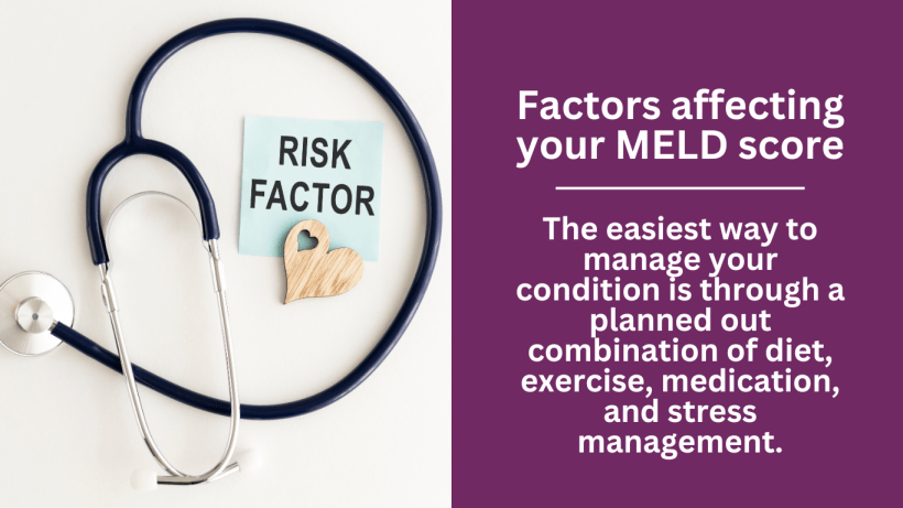 Several factors can influence your MELD score, and making healthy lifestyle choices can play a big role in keeping it as low as possible. The easiest way to manage your condition is through a planned out combination of diet, exercise, medication, and stress management.