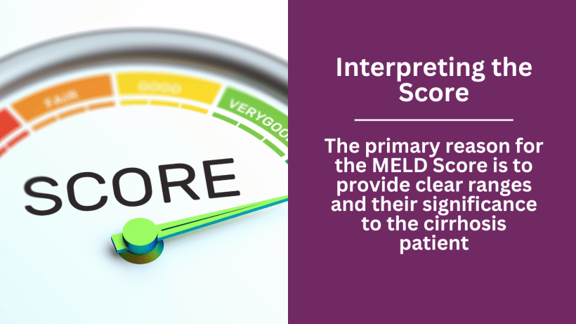The primary reason for the MELD Score is to provide clear ranges and their significance to the cirrhosis patient, their doctors, and the best course of treatment, The MELD score ranges from 6 to 40, with higher numbers indicating more severe liver disease. A score between 6 and 14 typically suggests early-stage cirrhosis or stable liver disease. Patients in this range may not show many symptoms and can often manage their condition with lifestyle changes and regular check-ups.
