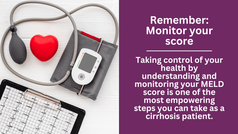 Remember to keep your eyes on your MELD score, it is a great guide to where you are and what you should be focusing on. Talk with your health care team about what it means and how best to manage it. Remember, it is just a number and it can be changed.