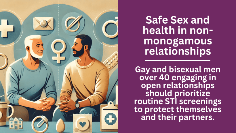 Maintaining sexual health in a non-monogamous relationship requires a proactive approach to STI prevention and regular testing. Gay and bisexual men over 40 engaging in open relationships should prioritize routine STI screenings to protect themselves and their partners. The CDC recommends that sexually active men who have multiple partners get tested for HIV, syphilis, gonorrhea, and chlamydia every 3 to 6 months. Beyond testing, using PrEP (pre-exposure prophylaxis) can significantly reduce the risk of HIV transmission, while PEP (post-exposure prophylaxis) serves as an emergency prevention option if exposure occurs. Condoms and other barrier methods remain essential tools for reducing the transmission of STIs like gonorrhea, syphilis, and herpes. When navigating multiple partners, discussing and updating safe sex practices regularly ensures that everyone involved is informed and protected.