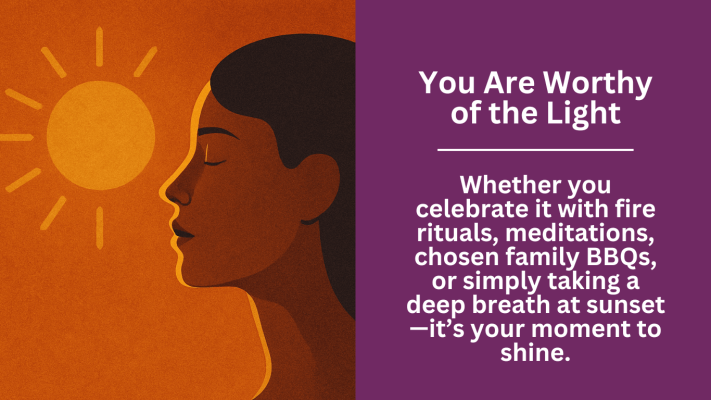 For those of us in the LGBTQ+ community, especially those carrying both scars and strength, the solstice can become a sacred time of return. Return to self. Return to truth. Return to the knowing that you are worthy—of light, of shadow, of belonging, and of joy.