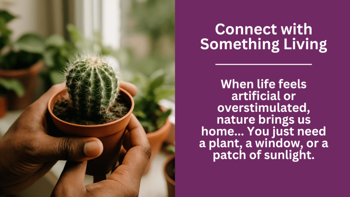 When life feels artificial or overstimulated, nature brings us home. You don’t need to hike a mountain. You just need a plant, a window, or a patch of sunlight.