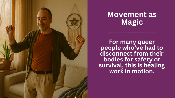 Movement reconnects your body to your spirit. For many queer people who’ve had to disconnect from their bodies for safety or survival, this is healing work in motion.