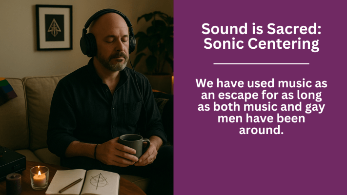 Using sound for healing is not something new to gay men. We have used music as an escape for as long as both music and gay men have been around. Ballads and torch songs gave us a means to express our love, since we had to keep it hidden. Upbeat dance grooves became our way of protesting the daily assaults we endured. It was the language of our lives and souls, we understood the power it had. It was church for us