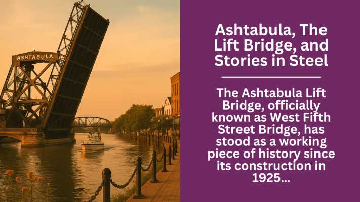 Today, Ashtabula is a hidden gem for those who want Lake Erie views without the noise or flash of more popular destinations. It’s peaceful without being empty, scenic without being overrun—a place where you can still hear the creak of the bridge lifting, the lake brushing against the docks, and your own thoughts. It feels like a space that belongs to locals and travelers alike who are looking to slow down and savor Northeast Ohio’s quieter beauty.