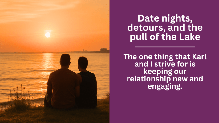 The one thing that Karl and I strive for is keeping our relationship new and engaging. One of the small ways we do that is to have a date night every week. The make-up of this “date night” is pretty basic, in nature. It means time we spend together that is different from our normal nightly routines. It can include going to a new or favorite restaurant, checking out a show at Playhouse Square, a movie together, cooking a meal, or just about anything that isn’t part of our normal routine.