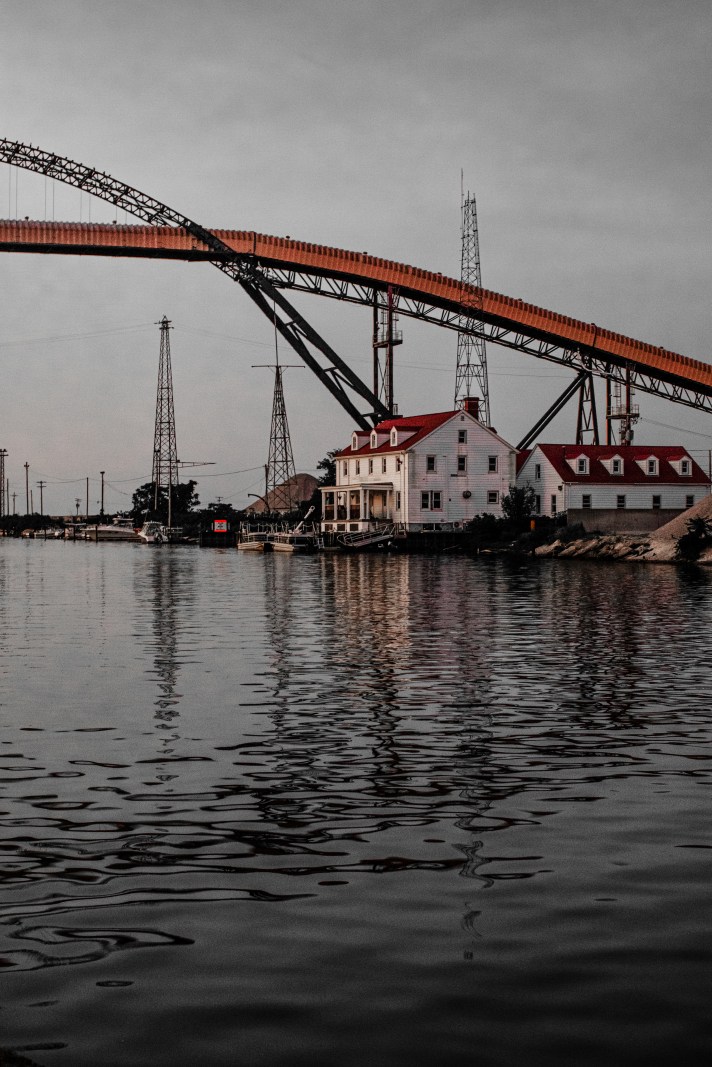 Through some of our research and travels, we remembered that there was a lift bridge in Ashtabula that had some pretty cool lights on it and with the fourth happening, a good charge for some fireworks. We had gone to a couple local art and craft shows and each one had a photographer who had shot various angles and seasons of the Ashtabula Lift Bridge, so this seemed to be some kind of suggestion from the universe and we decided to heed it.