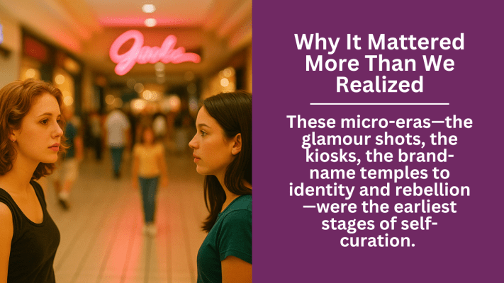 The mall gave us lessons in self-presentation, confidence, and boundary-pushing. It let us try on versions of ourselves we weren’t allowed to be at home. And through it all, we learned how to build a style that was ours, and sometimes, a future we didn’t know we were growing into.