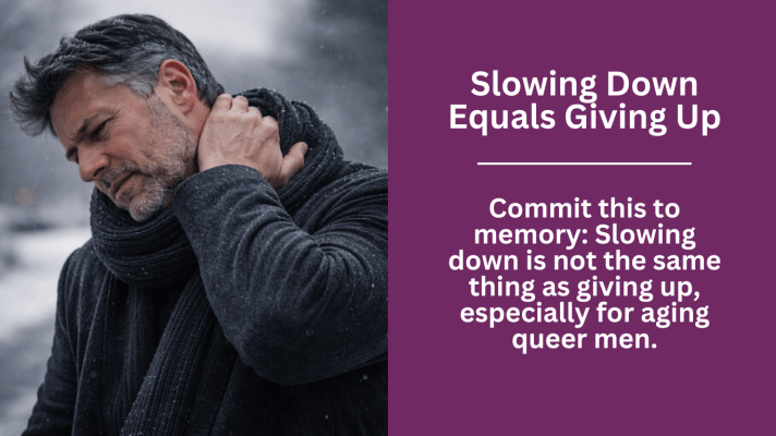 Commit this to memory: Slowing down is not the same thing as giving up, especially for aging queer men.
