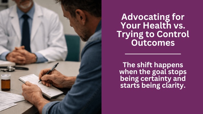 For many of us, especially after 40, advocating for yourself at the doctor can feel uncomfortably close to control. When the body becomes less predictable, the instinct to manage every variable makes sense. We research relentlessly, track symptoms, memorize lab ranges, and rehearse questions as if preparation alone can eliminate uncertainty. But control is about trying to remove uncertainty, while advocacy is about learning how to move through it. Advocacy doesn’t require mastery of medicine or perfect understanding, it requires presence.
