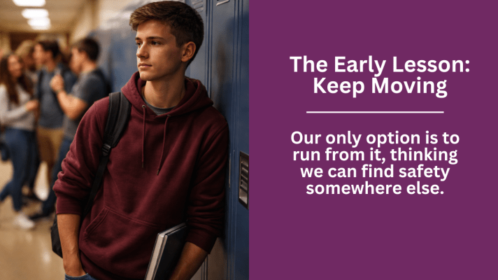 As we get older, all of this emotional suppression “feels” normal. This can lead us to not being able to realistically being able to express our feelings with others when the situation warrants. We fall back to not trusting ourselves and others and, as such, we often are left feeling worse than when we began. Our only option is to run from it, thinking we can find safety somewhere else.