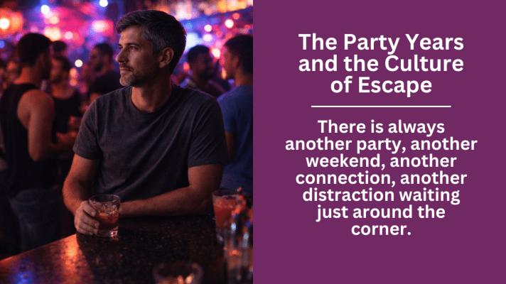None of this makes those years meaningless. For many of us, those environments were lifelines during a time when broader society offered little safety or understanding. But over time, constant motion can become its own form of avoidance. When the music fades and the night finally ends, what remains is the realization that movement is easier than reflection, and that some feelings have been patiently waiting for us to slow down long enough to hear them.