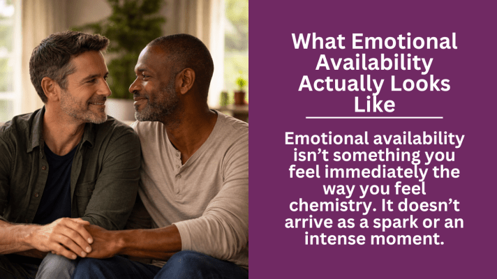 Emotional availability isn’t something you feel immediately the way you feel chemistry. It doesn’t arrive as a spark or an intense moment. It shows up in quieter ways; consistency, presence, the ability to communicate honestly even when it’s uncomfortable.